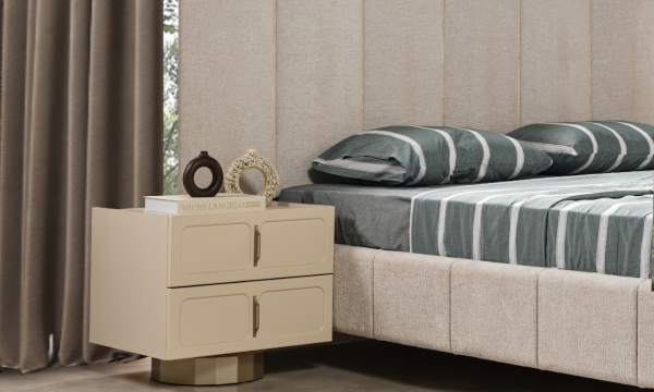 Komodin ayakları gold renk kaplamadır. Karyola başlığına entegre olabilecek şekilde ölçülendirilmiştir. |
